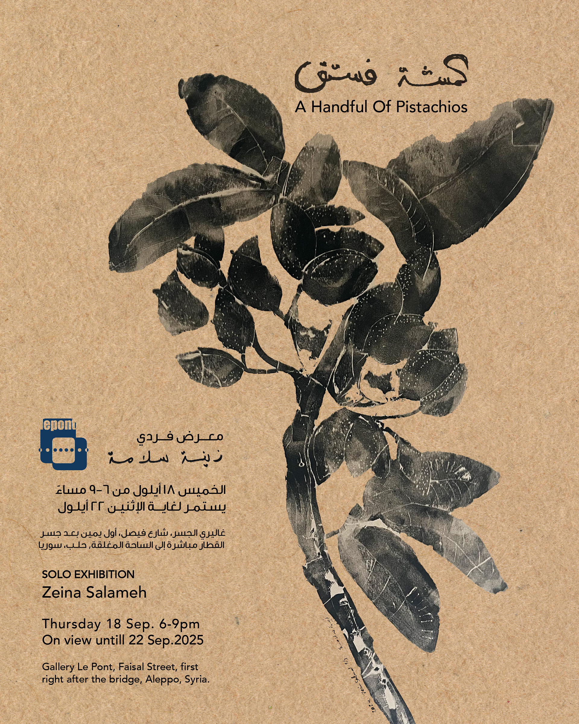 The idea of “A Handful of Pistachios” was born after the February 2023 earthquake that once again revealed the wounds of Aleppo and its people. For me, the earthquake took me back to a point before zero, and opened the box of emotions for the thousandth time. I was there in body only but in mind, in heart, in spirit… I was here. From that moment, I imagined myself hugging Aleppo with all it holds, its streets, its people, a long hug, blowing gently on wounds that deepen each day. This work is an attempt to soothe, to calm the spirit and reassure it. “Handful”… because metaphorically, it means abundance, more than plenty. “Pistachio”… because it is born of heat and warmth, and signifies a looooong warm hug, as if my heart had gathered all the love from Aleppo into one handful, to offer it to the whole world at once.