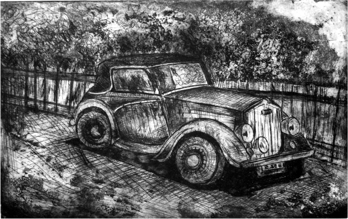 A collection of studies using different techniques and materials. Woodcut, Linocut, Etching, Monotype, Collagraph
