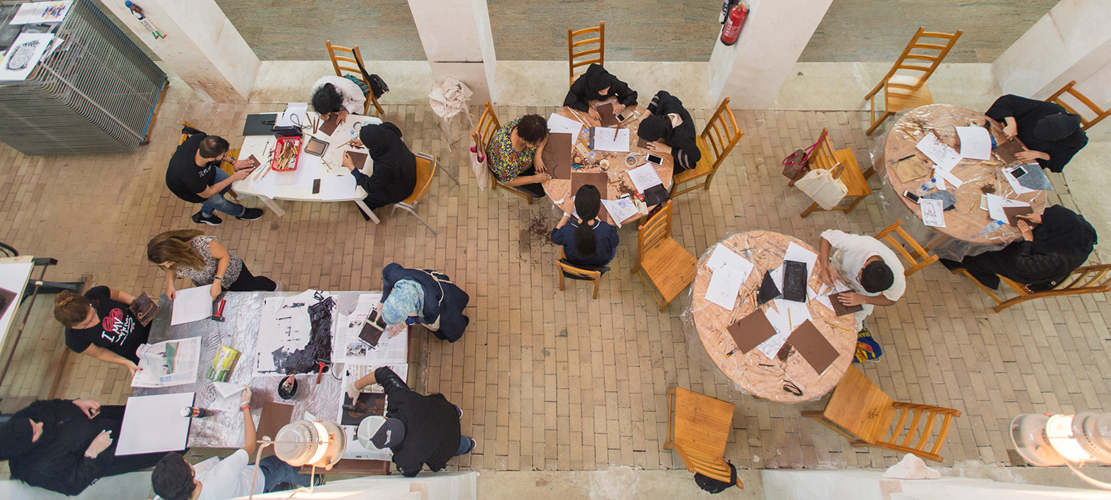 I’m leading Graphic workshops for beginners and advanced students at the Sharjah Art Institute. the workshop taught the students the principals and the origins of Printmaking.
